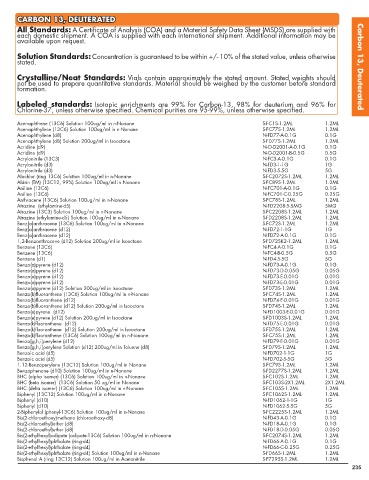 Labeled standards: Isotopic enrichments are 99% for Carbon-13, 98% for deuterium and 96% for