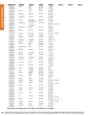 CATALOG NO. ELEMENT SOURCE PURITY MATRIX 100 mL 250 mL 500 mL