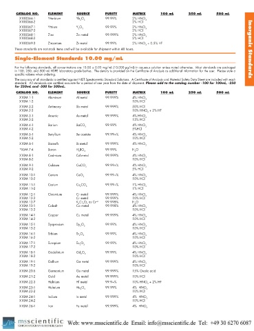 standard. All standards are certifi ed accurate for a period of one year from the date of shipment. Please add to the catalog number -100 for 100mL, -250