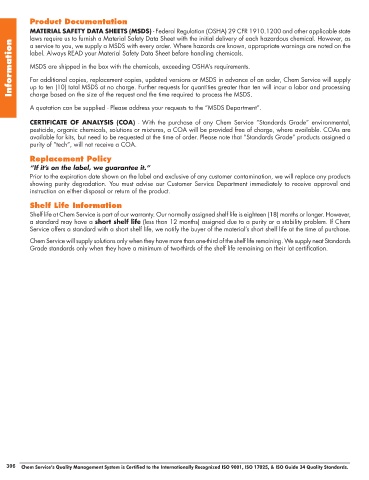 Chem Service’s Quality Management System is Certifi ed to the Internationally Recognized ISO 9001 & ISO 17025 Quality Standards.