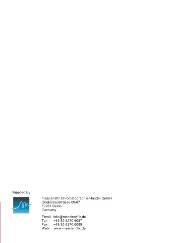 Supplied By: msscientific Chromatographie-Handel GmbH Gneisenaustrasse 66/67 10961 Berlin Germany Email: info@msscientific.de Tel: +49 30 6270 6087 Fax: +49 30 6270 6089 Web: www.msscientific.de