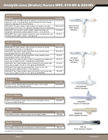 nominal uptake 0.5 mL/min, 1 L/min @ 50 psi. (See page 33 for more information) SilQ+ Quartz