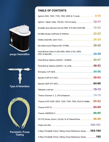 2-Stop Peristaltic Pump Tubing Cross-Reference Guide .......103-104