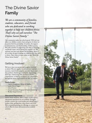 We are a community of families, students, educators, and friends who are dedicated to working together to help our children thrive. That’s why we call ourselves “The Divine Savior Family.”