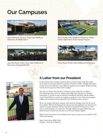 In 2004, Divine Savior Academy opened its doors in Doral, Florida. Today this campus serves nearly one thousand students in preschool, elementary, middle, and high school. Most recently we have been blessed to open additional campuses across southern Florida and Texas. God has been very good to Divine Savior Academy!