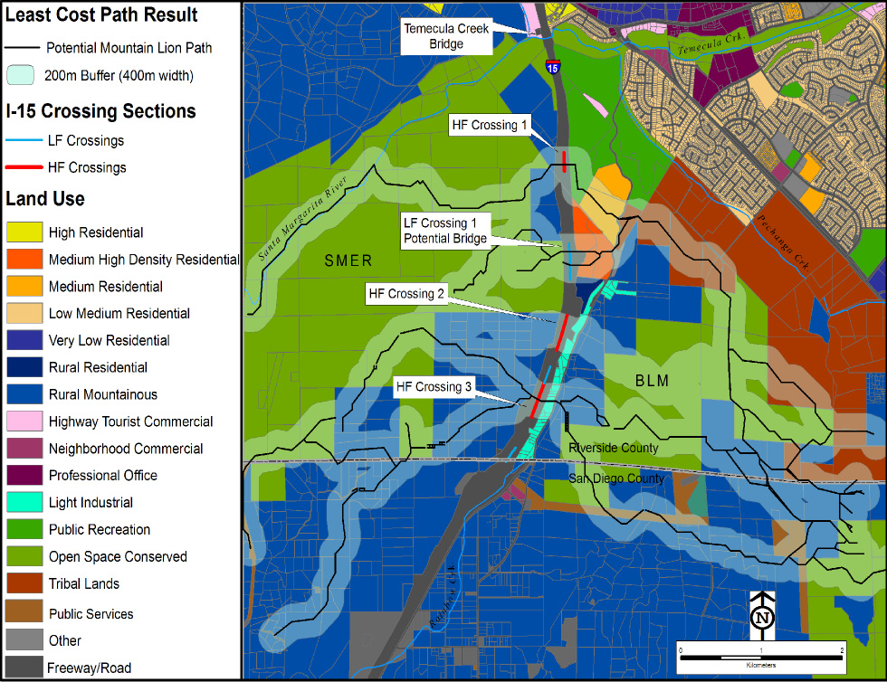 I defended my Masters thesis in Geography at SDSU in the winter of 2007 and was graduated in the spring of 2008. My research focused on analyzing the significance of a least-cost path GIS methodology to model mountain lion movement within southern California. In turn, I utilized this method to try and predict where a mountain lion may move through a complex wildland-urban matrix and approach an interstate. The results of my research located potential crossing locations along I-15 just south of Temecula, CA within a recognized wildlife corridor connecting the Palomar Mountains to the Santa Anna Mountains.