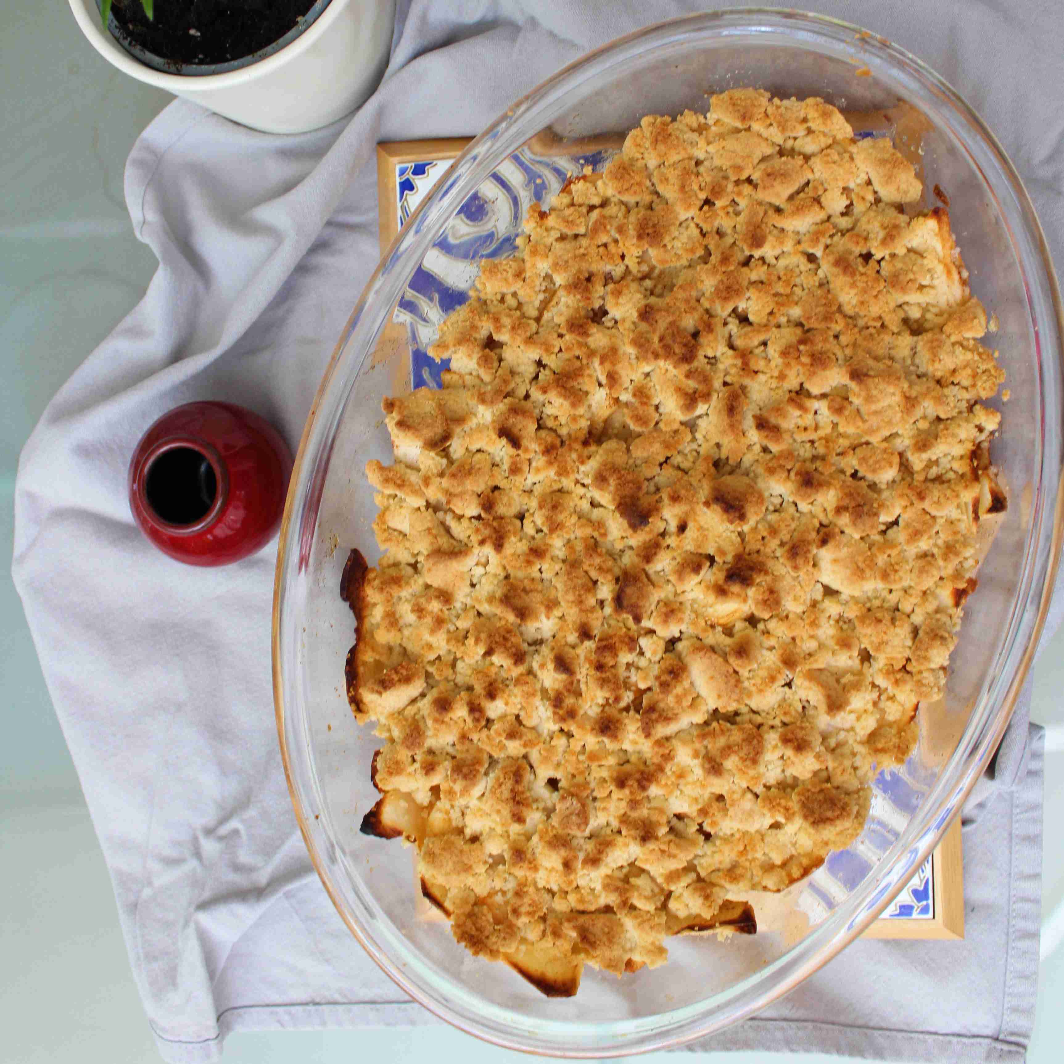The crumble topping calls for just 3 simple ingredients: sugar, flour and butter. Yet absolutely nothing is preventing you from being imaginative or even daring with them. So you can use any type of sugar you prefer or currently have at home, including brown sugar, coconut sugar or granulated sugar.