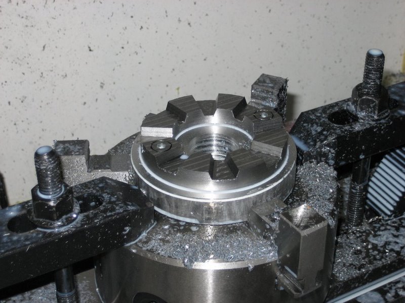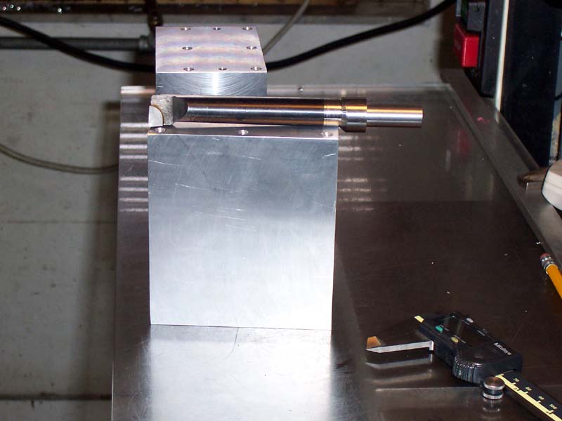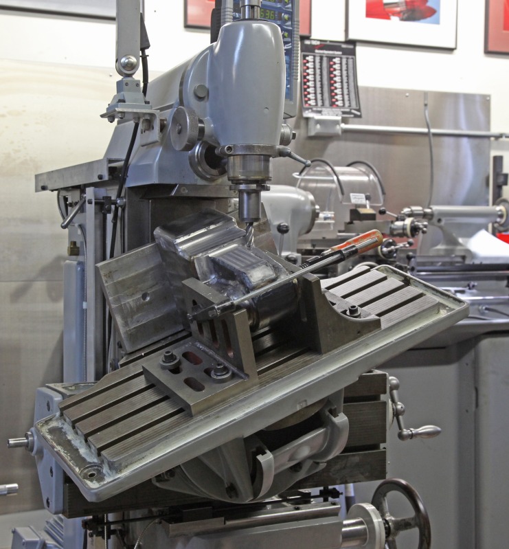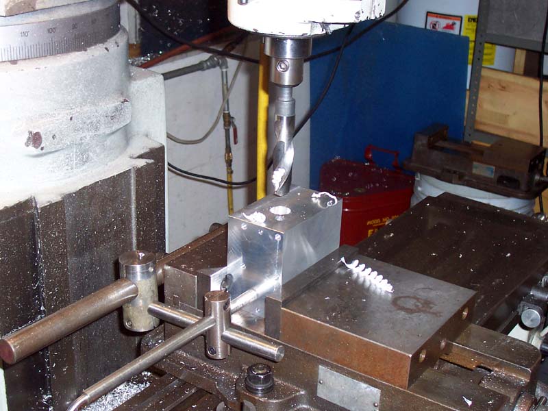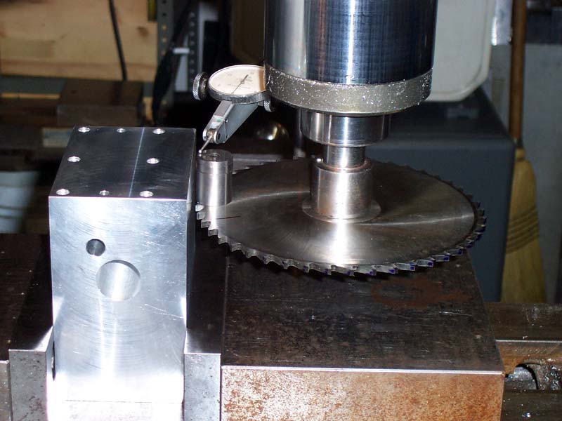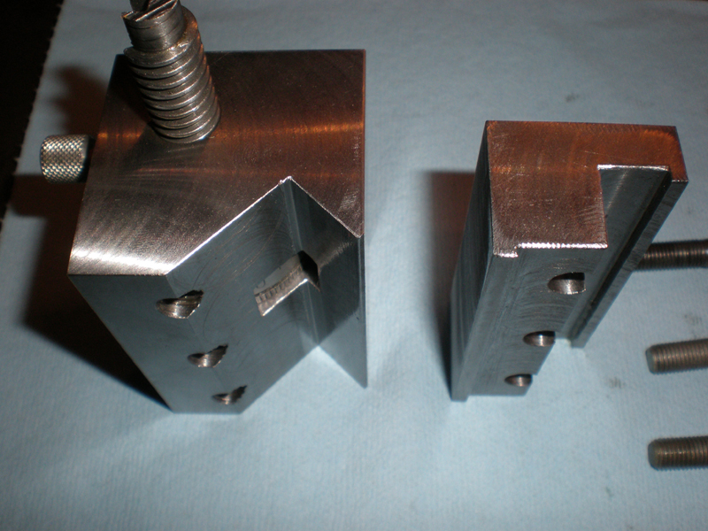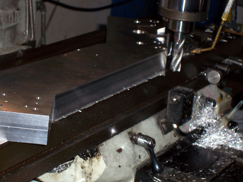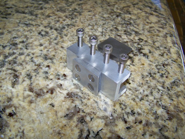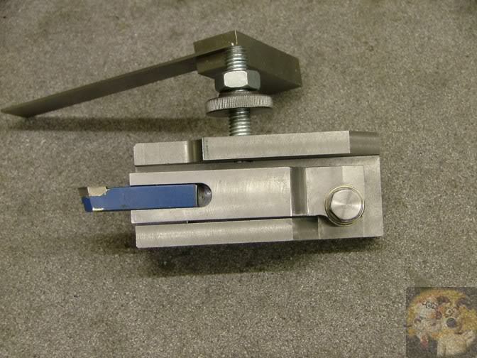The groove that rides on the lathe ways was cut by placing the block on V-blocks so it rested at an angle and then using an endmill...