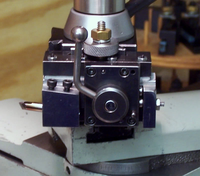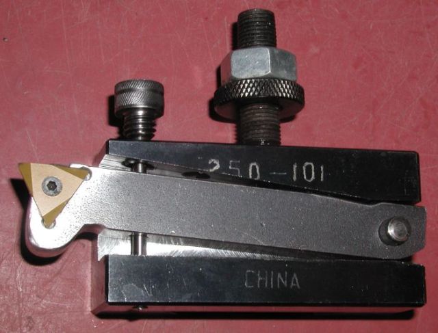 So the first aid I came across is what I will call a "Swing Threading Toolholder." This is a cool idea from HSM and other boards. When it comes time to reverse, stop the lathe, and simply reverse. Leave the half nut locked (some shops feel this gives a more accurate thread anyway). The "swing" is because the tool is free to swing upwards when it contacts the threads moving in reverse, so it doesn't cut on the return pass and you needn't retract.