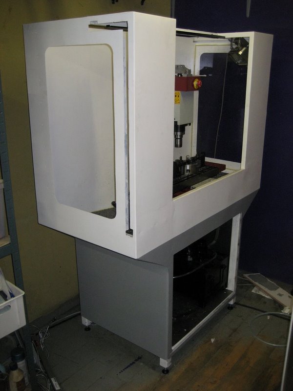 I like the way this enclosure is set up for a small mill. Looks like full width of the table for the door, and that is acrylic. The sides are for the table travel and are metal. There is an access panel on the ends...