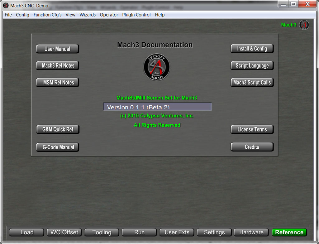 I want to point out one more goodie, which is the ability to get at all the documentation, release notes, and reference material right from your Mach3 screen: