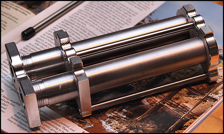 The plastic inside parts where bought as replacement parts very cheaply, which meant only the metal ends had to be machined. As you can see, they're very simple!