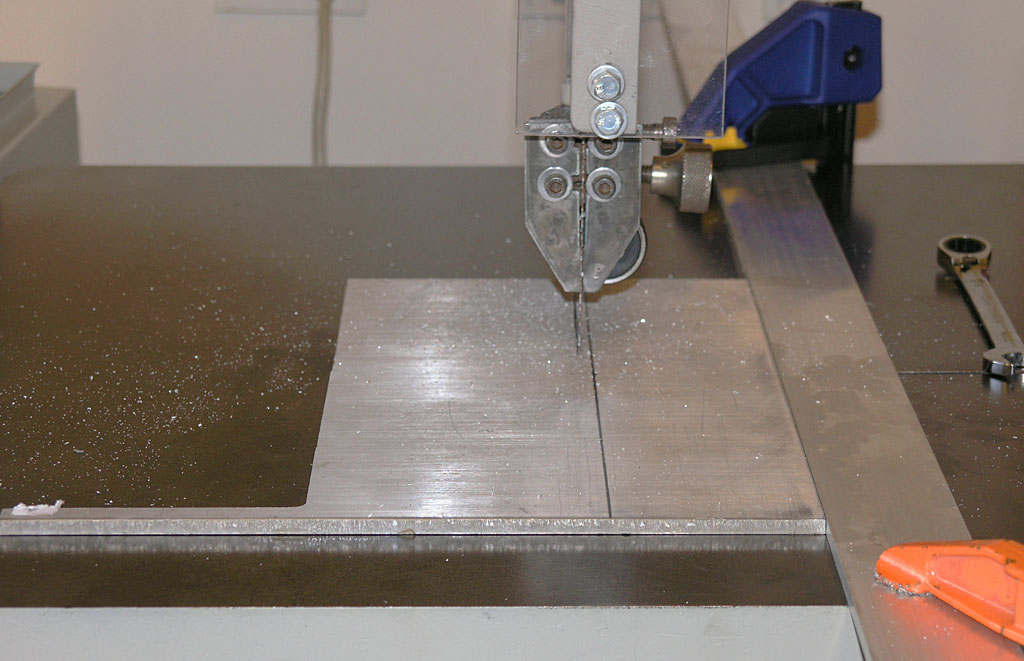 Finally got a chance to hook up a VFD to my new/old bandsaw so I could see it run. It's set up for 3 phase and the VFD I had laying around for eventual use with my mill was the easy way to fire it up. I made a few chips. Blade needs adjusting, and it also has the wrong blade in it for metal. This 20" bandsaw (Rockwell/Delta 28-365) seems to have been babied in a woodworking shop for years. I have a hunch when I get it all tuned up it will cut through metal like butter, especially aluminum. It's already very strong.
