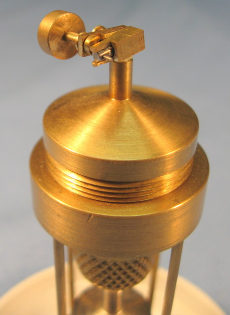 This little wobbler, courtesy of HMEM board, was apparently built from plans in the book, "Steam and Stirling Engines." It is from the article, "Thimble Power Plant", by James Senft. It has a 1/16" bore and stroke. The flywheel is 1/4" diameter the crankshaft is .020". It runs at about 20,000 rpm because it is so small.