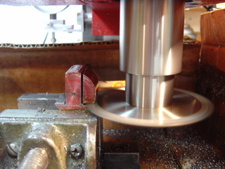 Place the small end on the pin of the fixture. I am using a 1/4" 4 flute end mill running at my mill's fastest speed...