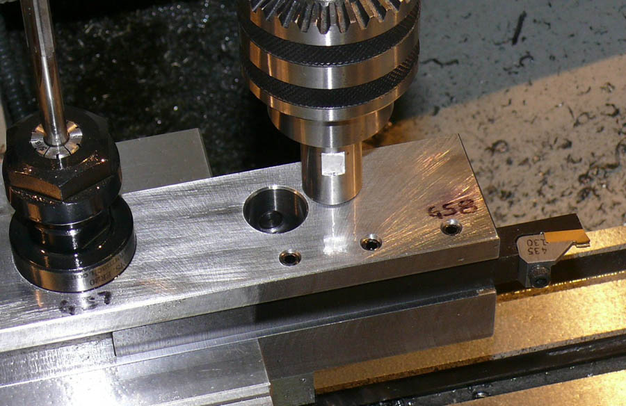 He's using his Tormach Tooling System holders with a slide mod--the Weldon-style flat. Presumably he can pop them back in the mill any time...
