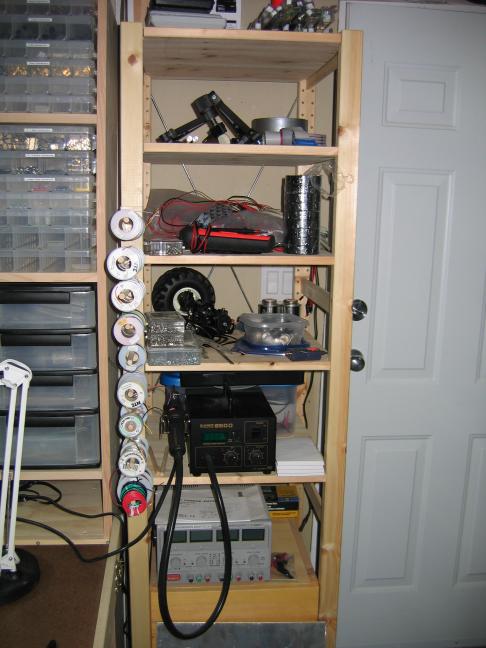 Dave Hyland's electronics workbench is pretty cool and very space efficient:
