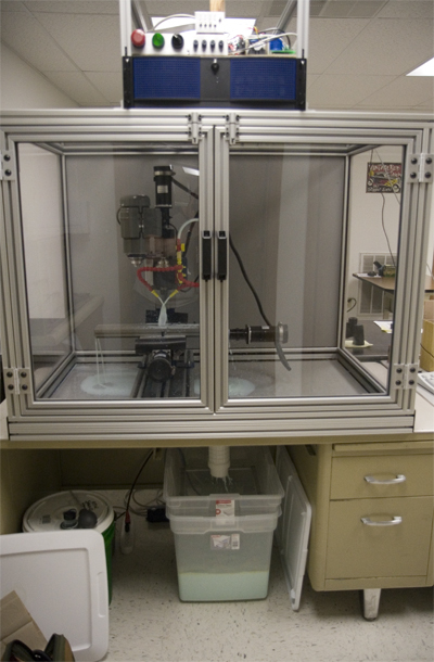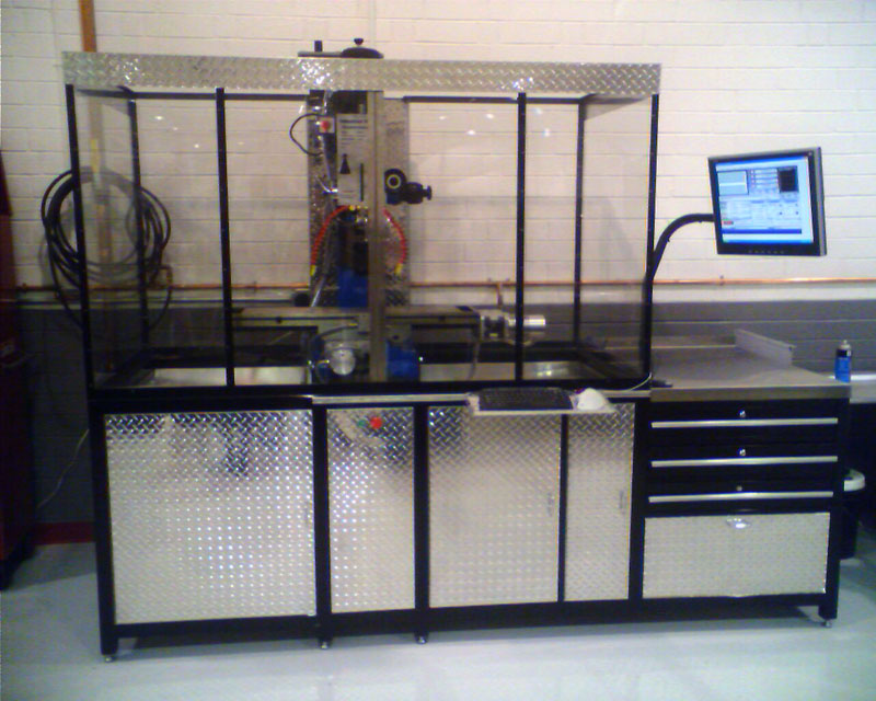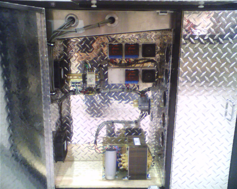Here's a more traditional enclosure. I love the way the whole front hinges downward for access. Notice how the coolant is channeled into the drip pan at the bottom...