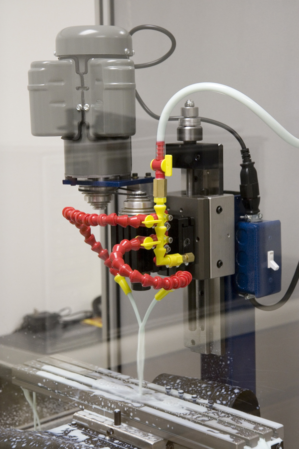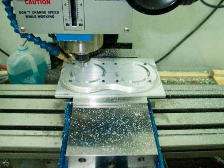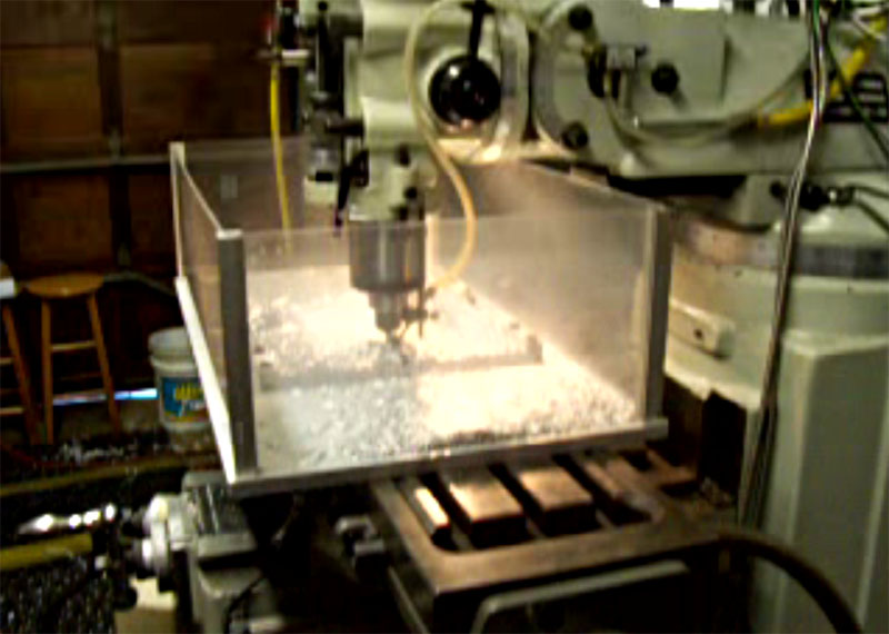 Cool cover isn't it? He used a 2 flute end mill at 3000 rpm and 3-4 IPM feedrate. That's just about exactly what ME Consultant Pro would recommend. He said the job took 4 hours with a 1/16" DOC. FWIW, ME Consultant Pro would recommend a 0.1" DOC, which is not quite 2x the depth, and so it might halve the time on the job. For coolant, he ran a Noga mister with Kool Mist.