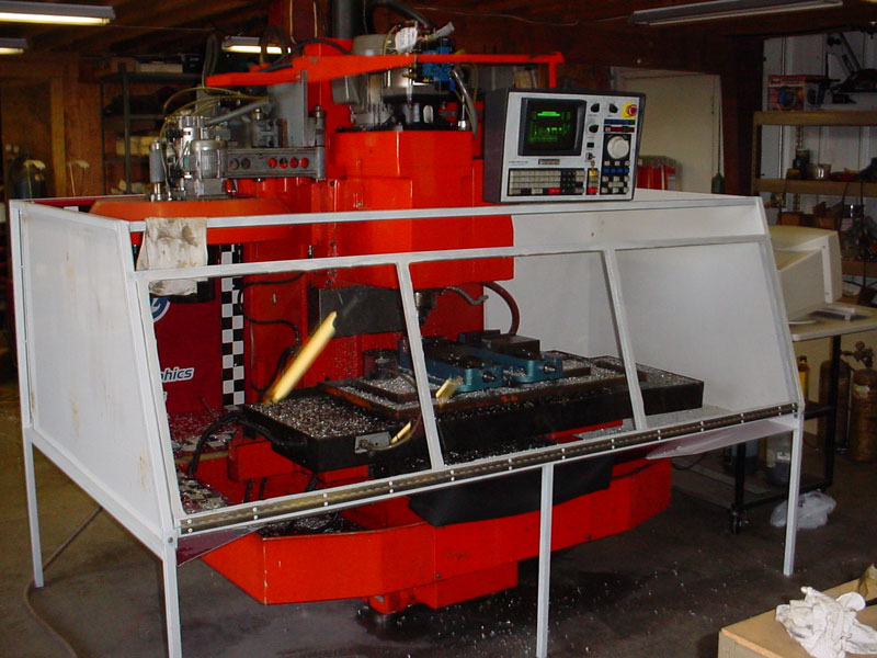 The splash guard on this Tree CNC mill would be a lot easier to build than a full enclosure. It will limit the size of work that can be done, however. The Widgitmaster has built a very similar enclosure for his Bridgeport clone: