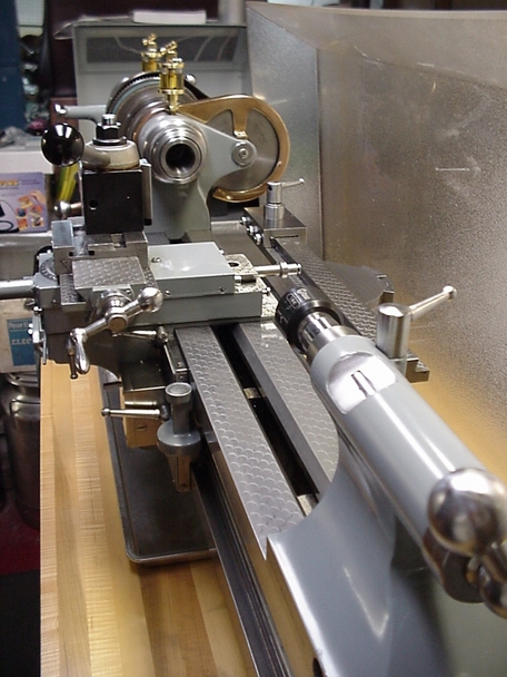 7) When making the finish cuts, turn the machine on before you move that dial. Even a fine lathe will creep a couple tenths from cross feed screw pressure from the starting vibration.