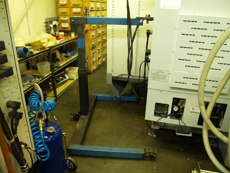 That color would work in my shop, eh? This fellow recommends 2 dollies on the crane as coming in handy a lot...