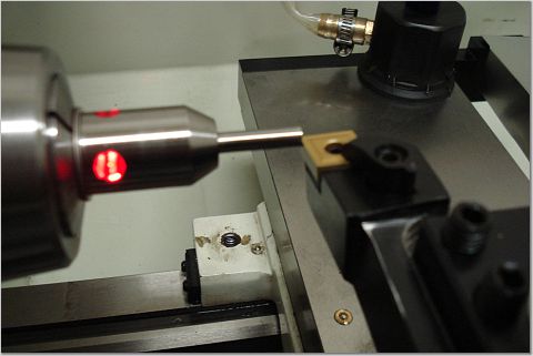 I knew there was a reason I'd need one of these cool electronic edgefinders after I saw this picture of using one to touch off a CNC converted Lathemaster 9x30: