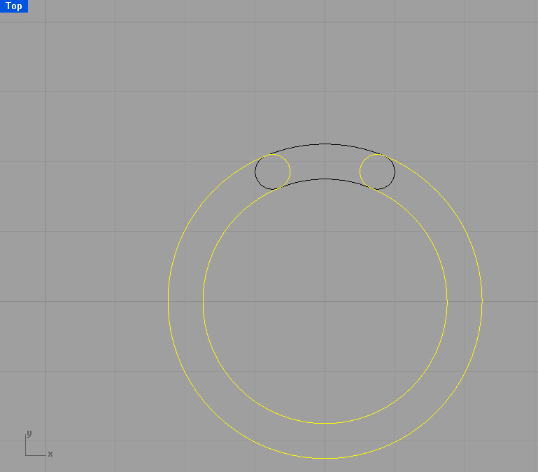 Here are all the construction lines. Note that Rhino made it easy for me to select the box and the two big circles and it figured out how to exactly postiion the small circles for me.