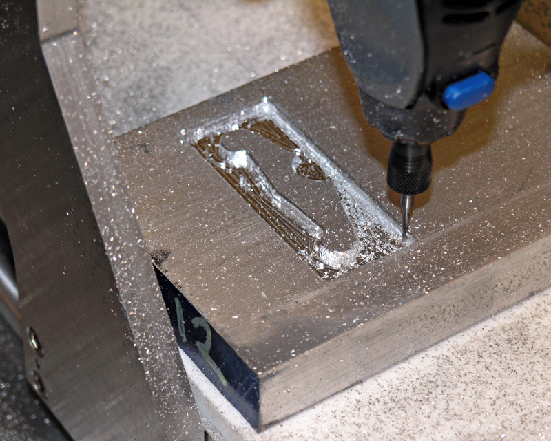 I loaded a 1/16" ball mill into the Dremel and had at it: