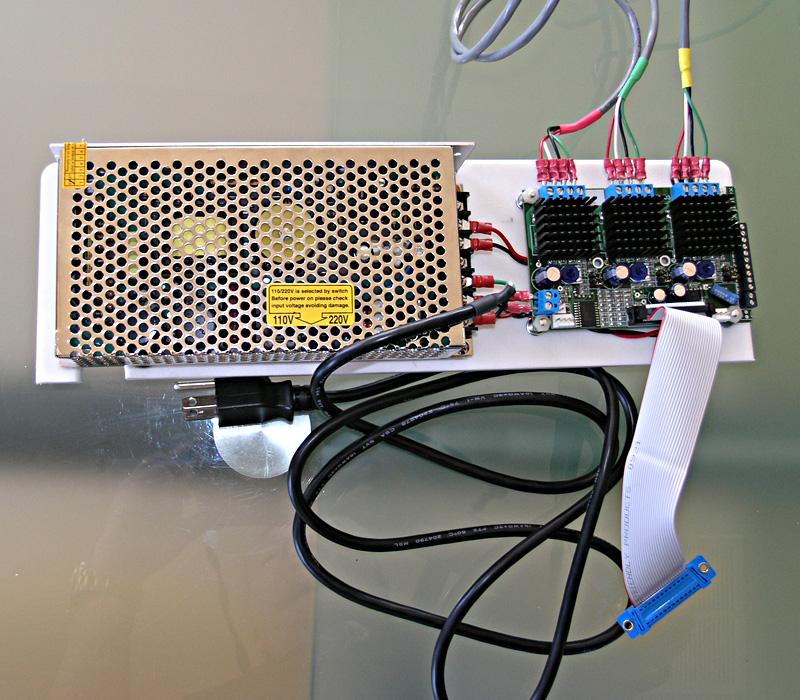 Here are the power supply and Xylotex board bolted onto the tray and wired up:
