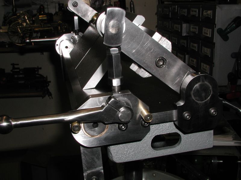 In fact, the whole sheet metal tool arsenal would be handy to have at hand. An English wheel, slip rolls, etc., etc.. I did come across some photos of this beautiful pan and box brake, which was built based on an article in "Projects in Metal." I ordered their book so that I would have these plans available when I'm ready to jump in. The article in the book is excellent, and there are a number of other projects to covet there as well (like the precision cutter grinder and tilting table for milling). Order "Metalworking, Book Two, The Best of Projects in Metal." This particular brake was designed by Glenn Wilson.