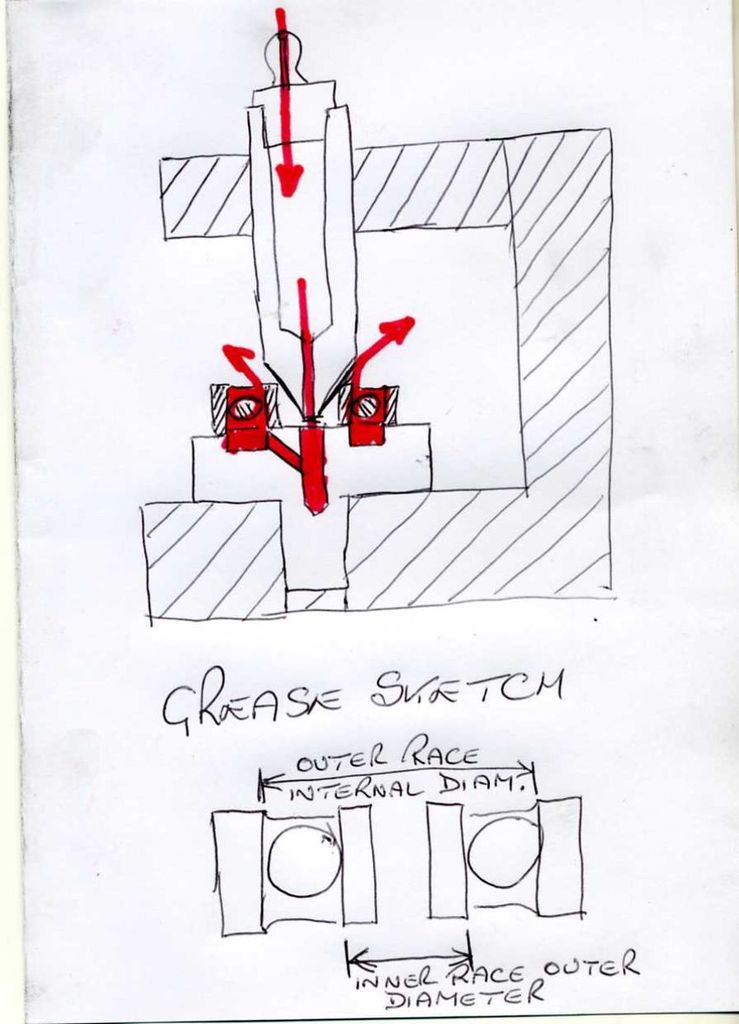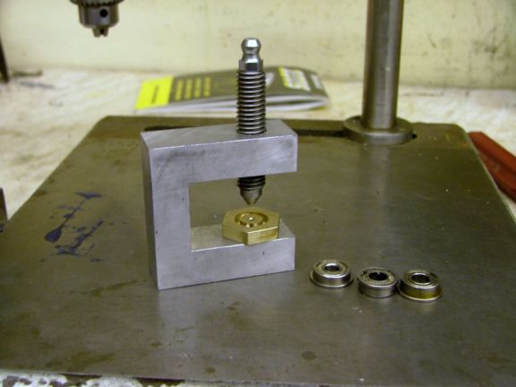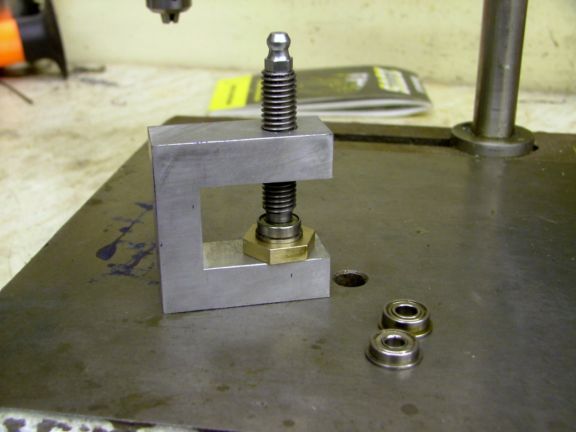 Zerk for grease gun is on top. Just use the hand gun, not a pneumatic or there is a danger of bending the shield! I had an idea for some fixtures to help with preloading bearings. Perhaps a multi-purpose fixture could be created, I'll have to ponder that.