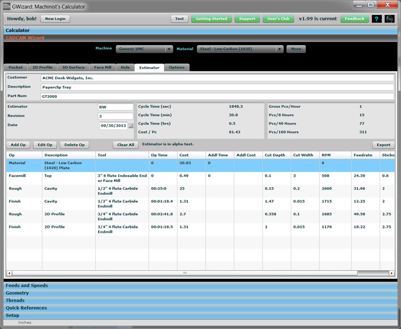 Try our CADCAM Estimator with a Free Trial of G-Wizard Calculator...