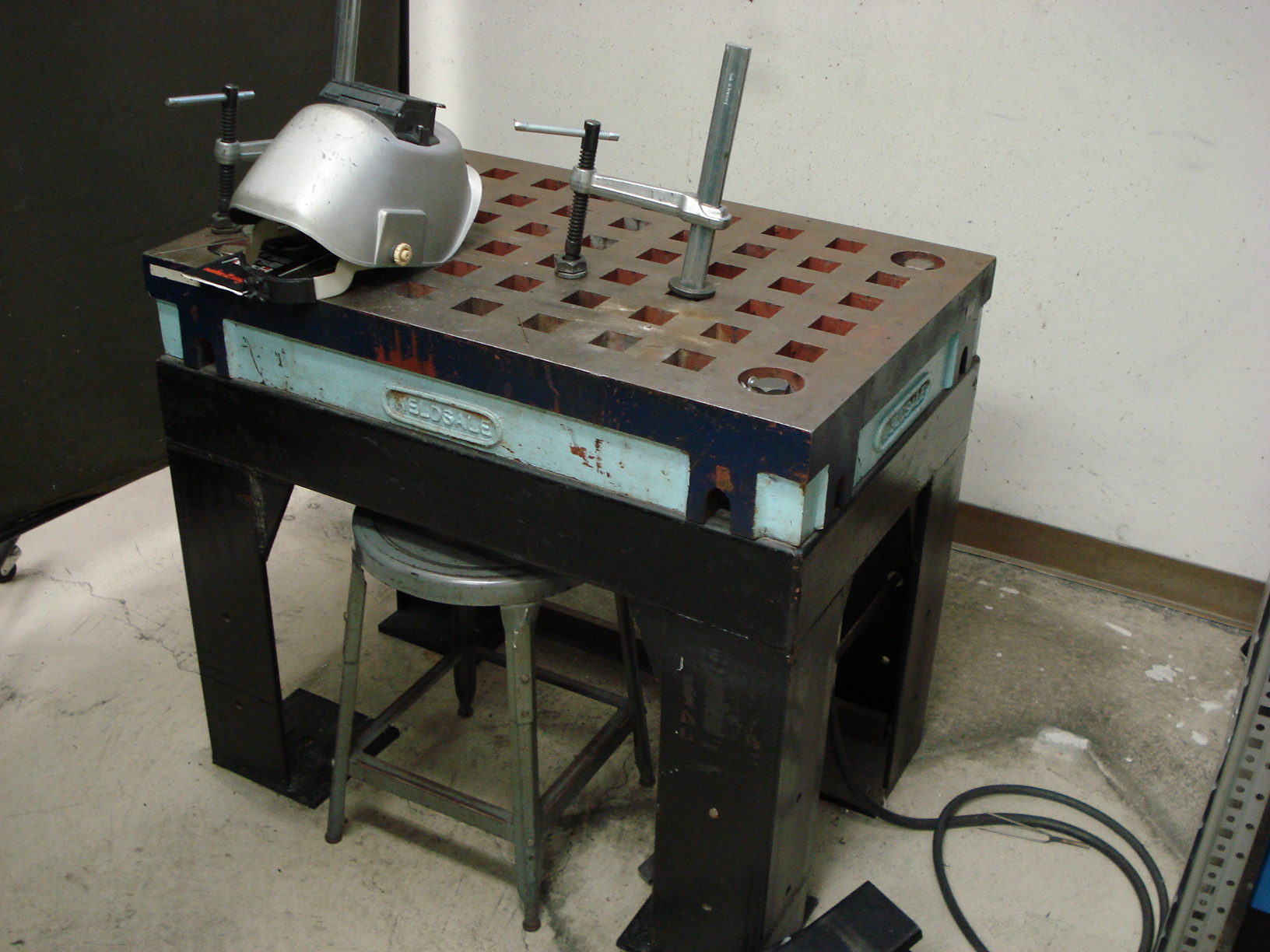 Thick cast iron with square holes is the ultimate industrial welding table surface. This type of surface is called an "Acorn Table"...