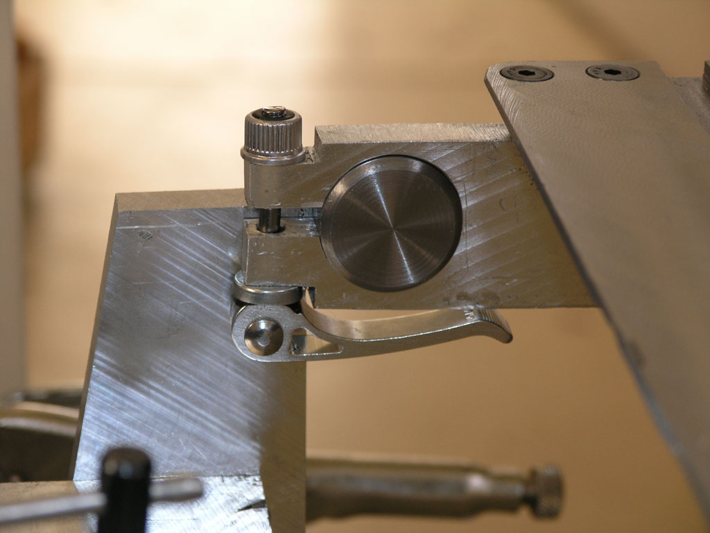 Final balancing of the disc was tricky. There was considerable vibration when I fired it up the first time. This was no doubt made worse by the fact I have a 3400 rpm motor, so it was going quite fast. I could see the disc wasn't quite spinning true, so my efforts at dialing in the hub on the rotab were not quite on the money. Since I don't own a lathe with enough capacity to true it up I decided to use the sander itself as a lathe: