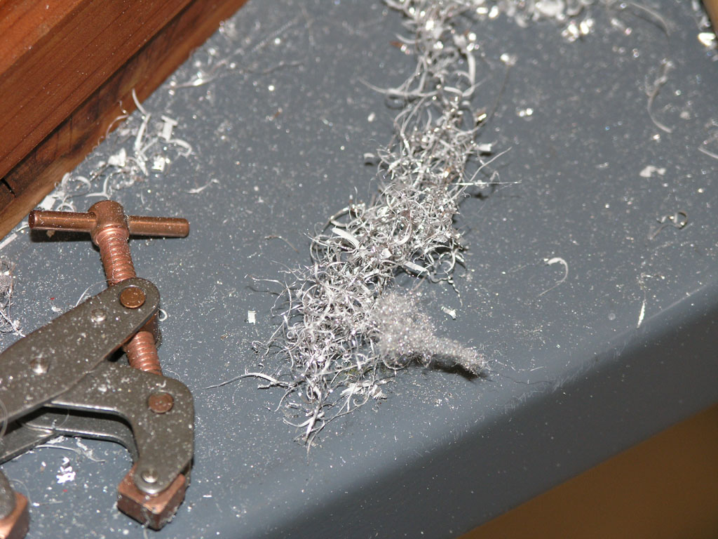 Check the fuzzy "aluminum wool" the light cuts made. This image is magnified. That Kant-Twist is about 1" across. I've never seen swarf like this, but 3400 rpm, a sharp CCMT carbide insert, and almost no cutting pressure on a shallow cut produces it...