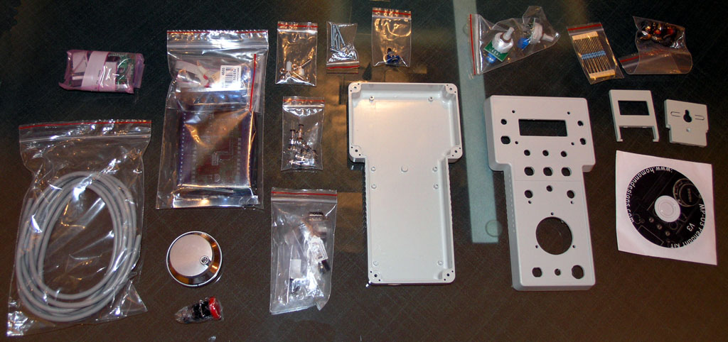 The parts kit for the pendant is very complete, and the parts are very high quality. I really like the rubber membrane covered pushbuttons and the led indicators in their little bezels. The plastic case is also nicely machined. Lay out all of your parts and make sure everything is there before proceeding!