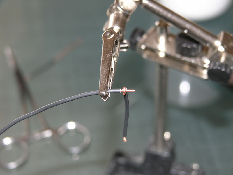 A simply "hook" splice ready to be soldered. There's room on the right to attach another "hook"...