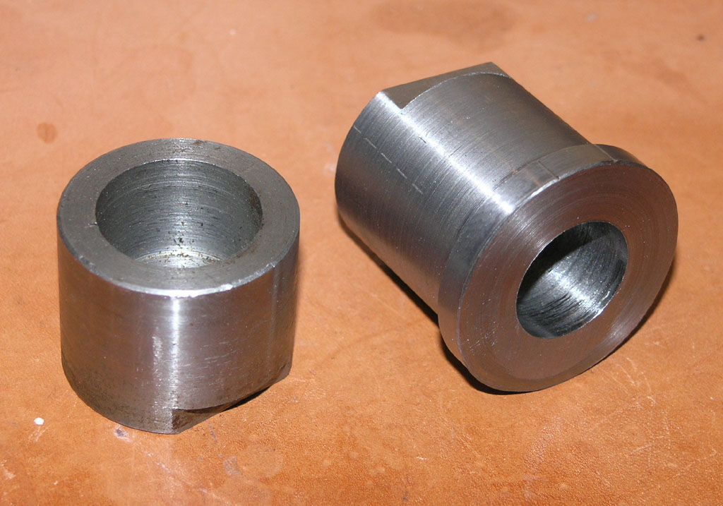 With the shoulder cut on the saddle, next step was to make the matching bushing. The only material I had large enough in steel (I've got a lot of aluminum) was some 12L14 hex stock: