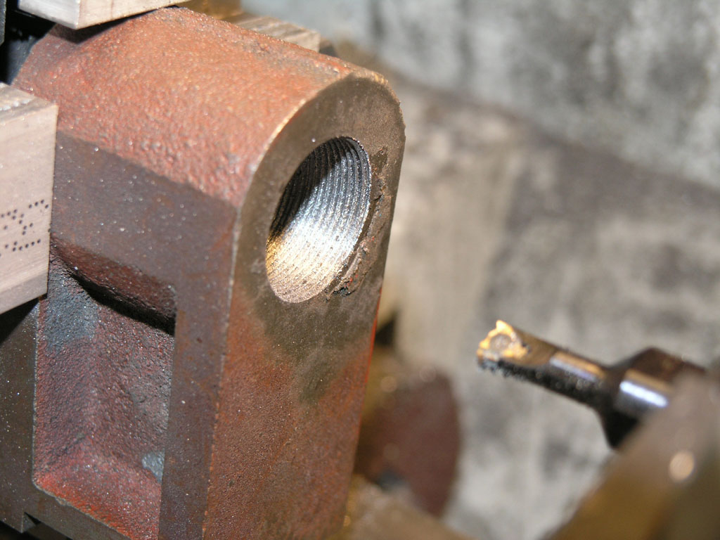 Next step was boring to the thread's minor diameter, which is 1.0649"