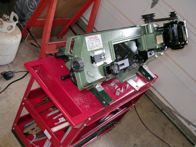 One of those obvious, "Why didn't I think of that?" projects is to adapt a rolling tool cart to hold my HF bandsaw. The stand they come with is junk anyway.
