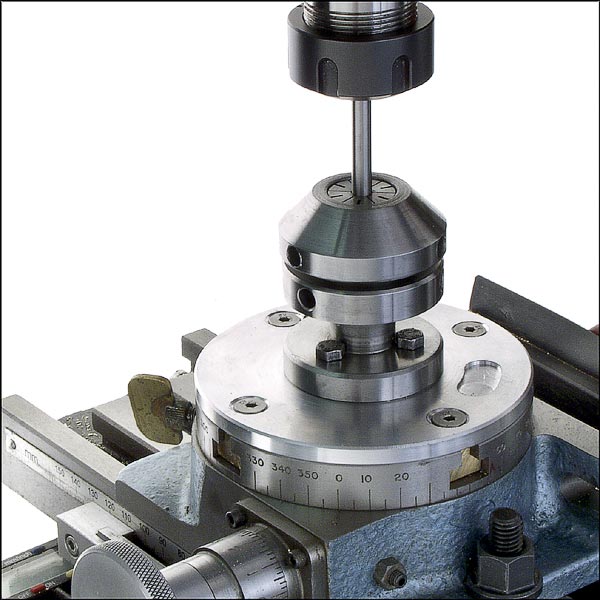 The rotary table with a chuck mounted is a good place as any to set up a rounding fixture. This idea from HMEM contributor Philjoe5.
