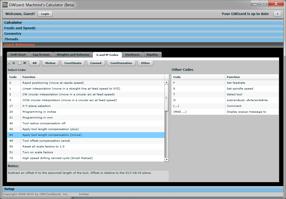 The G and M-Code reference is a handy way to look up the codes. To use it: