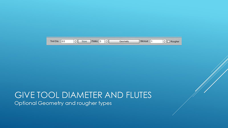 There's a button for standard sizes, optional tool geometries (ballnoses vs regular endmills and so on), and a place to enter stickout.