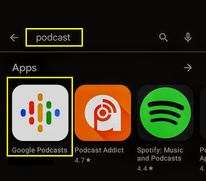 | download the Google Podcast app from the store (Apple or Google Play) | After download, Open the app | |