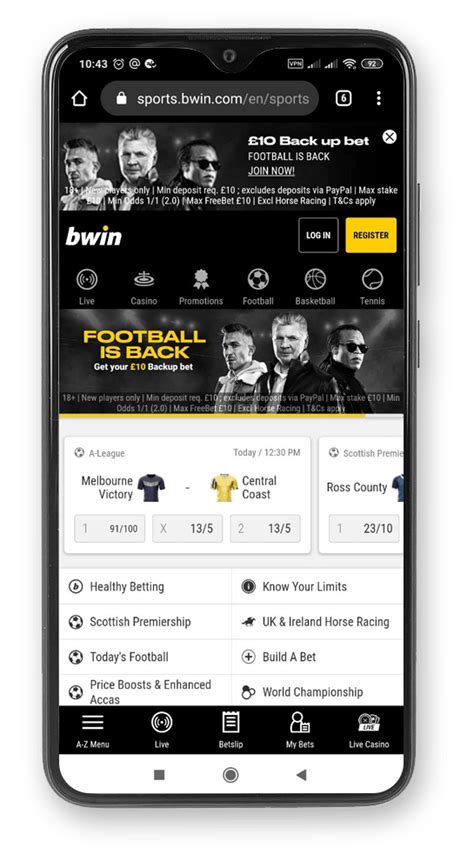 1 Nov 2026 — Bwin offers online sports betting globally , and you can bet on anything from NBA basketball and Grand Slam tennis to NASCAR and PGA golf. Online Sports Betting & Odds UK: Football, F1, More | bwin €100 Welcome Bonus for New Customers! Bwin Sports for Android - Download the APK from Uptodown bwin allows you in play betting while you follow all your favourite sports, check out our live betting odds for Football, Tennis and every event happening ... bwin betting offers live football betting tips. Choose bwin for all your online football betting news and tips. How To Bet On Football With Bwin - OnTheBallBets Tutorial Betting guide Europe's biggest online sports betting and gaming site . Exciting live betting odds, Online Poker, Casino and Games. Join the b'inside community and play for ...