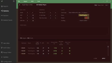 Getting started with Live Poker Database in Hand2Note for FREE Les informations affichées par HUD ne sont pas conservées en mémoire au terme de votre session. Si vous souhaitez vous munir d’un HUD conservant en mémoire vos statistiques et celles de vos adversaires, nous vous conseillons de jeter un œil à la boutique VIP de Winamax , où sont proposés des logiciels tiers autorisés par Winamax. Hand2not et Winamax - Logiciel de Poker Le HUD de Hand2Note est en avance de 20 ans sur la concurrence. Découvrez le HUD dynamique, les diagrammes de force des mains, les tells de mises, la … Malheureusement, les HUDs positionnels et dynamiques ne sont pas autorisés sur PokerStars, IPoker et Winamax . Cependant, vous pouvez les utiliser sur d ... 10 Dec 2026 — Pour résumer et finir: tracker dynamique (choix d'affichage par position et action); tracker gratuit jusqu'en nl25 avec l'option, positionnel et ... Commencez simplement avec le VPIP/PFR. Ou laissez le puissant HUD dynamique de Hand2Note4 vous aider dans votre prise de décision. Quoi que vous vouliez, notre logiciel est intuitif à utiliser sur PC et les émulateurs Android. En savoir plus sur les fonctionnalités de Hand2Note. Explorez-les avec Hand2Note — l’outil d’analyse de poker le plus puissant. Toutes les cartes sont révélées, et chaque main inclut un lien vers la vidéo originale. Nous avons créé un produit unique qui … HUD de Poker dans Hand2Note Hand2Note, Vers l'excelence et la polyvalence!