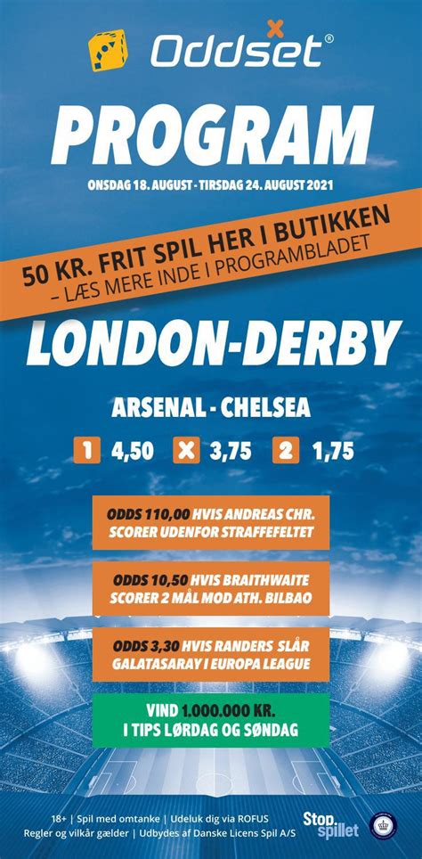 20 Nov 2026 — Følg Den Lange hos Oddset : Se programblad , odds kupon & live betting. Spil uden ROFUS & uden dansk licens. Find bookmakere & odds i dag! Se programbladet for Oddset her og se de næste 48 timer eller 7 dage. Du kan også printe programbladet hvis du gerne vil have det fysisk. Langoddsen Den lange Find Oddset programbladet her | Se de næste 48 timer ... Den lange – Oddset - Danske Spil Oddset Den Lange – Programblad, Odds & Live Betting i ... Spilstop Nr. Kampe. Programbladet Den Lange – Dagens Tips, Odds & Analyser Januar 2026 Den lange program hos Danske Spil giver dig mulighed for at studere statistikker, odds og favoritter inden for en bred vifte af sportsgrene som fodbold, tennis, basketball og meget mere. Oddset | Odds & Liveodds hos Svenska Spel