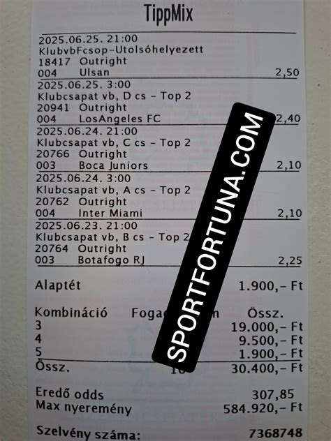 A terminálon játszható V-sport hivatalos ajánlatát a www.tippmix.hu/v-sport oldalon, illetve a Tippmix Radar mobilalkalmazásban találod meg, ahol a fogadható bajnokság aktuális és következő … Tippmix élő fogadás - meccsek - oddsok - eredmények VIL - FCB. Tét: 1 000 Ft; Odds: 9,74; Várható nyeremény: 9 740 Ft . Helyezd a szelvényre · AVL - MUFC. Tét: 1 000 Ft; Odds: 9,74; Várható nyeremény: 9 740 Ft. Tippmix Tippmix eredmények A Tippmix teljes fogadási ajánlata weboldalunkon. Listázd a meccseket sportág, dátum, liga vagy odds-ok szerint, és tedd meg tétjeidet! A Tippmix kiértékeli a félbeszakadt baseball mérkőzéseket , ha lejátszottak legalább 5 teljes inninget vagy lejátszottak legalább 4 és fél inninget és azt ... Élő fogadások Angol Liga bajnokság Tippmix bajnok baseball sapka A teljes Tippmix fogadási kínálat, szuper odds-ok várnak oldalunkon! A szelvény online kitöltése után kérd le az azonosítót, és játszd meg egy közeli lottózóban!