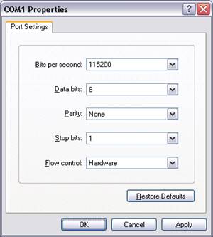 In Hyper Terminal application select “Hardware” flow control in serial settings.